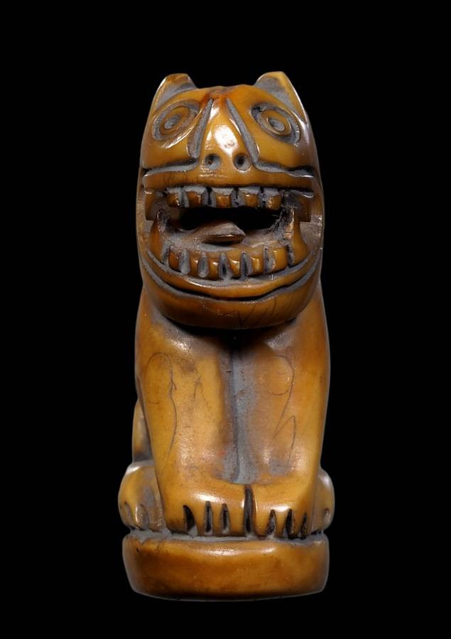 A1726.เสือไม้เเกะ มีรอยจารย์ เขย่ามีเสียง ไม่ทราบที่ครับ วัดใจ เคาะเดียวเเดง |