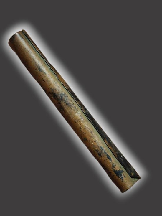 A1728.วัดใจ ตะกรุดเนื้อทองแดงเก่า ไม่ทราบที่ เคาะเดียวเเดง ขนาด 2 นิ้ว เก่าๆ |