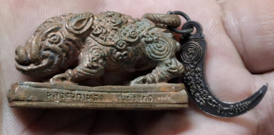 พญาหมูพลิกแผ่นดิน รุ่น 2 หลวงปู่กาหลงเขี้ยวแก้ว วัดเขาแหลม จ.สระแก้ว รุ่นครอบเศียรพระลักษณ์ ปี พ.ศ.2550 เนื้อนวโลหะขอมโบราณพันปี |
