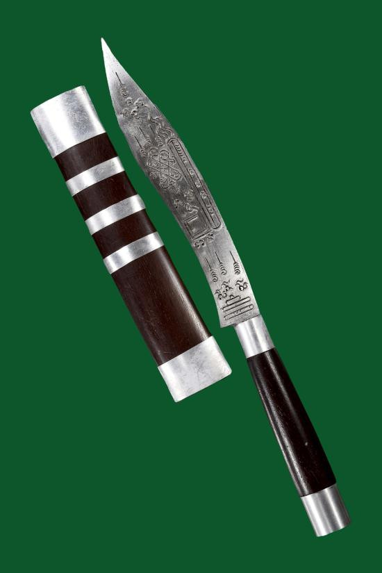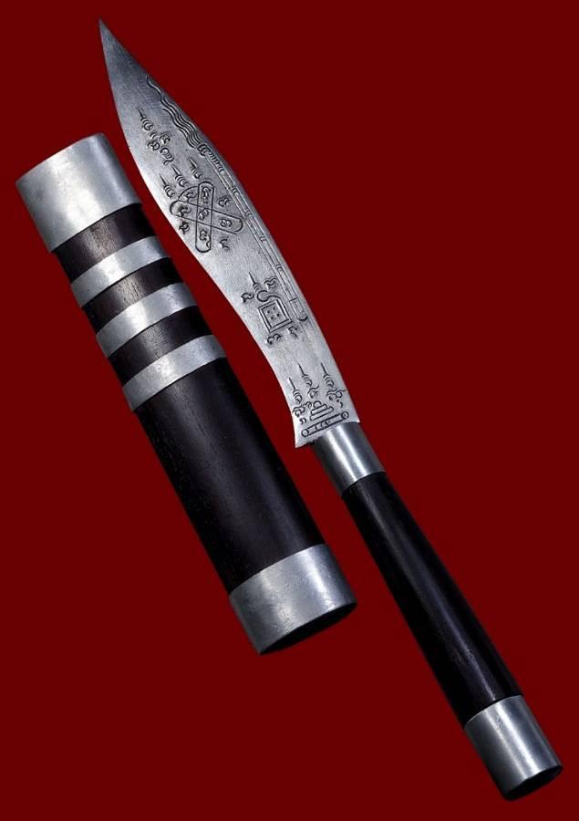 มีดหมอหลวงพ่อบุญมี ด้ามไม้-ฝักไม้มงคล ขนาดความยาวรวมฝัก 9 นิ้ว ตอกอักขระเข้มขลังทั้ง 2 ด้าน |