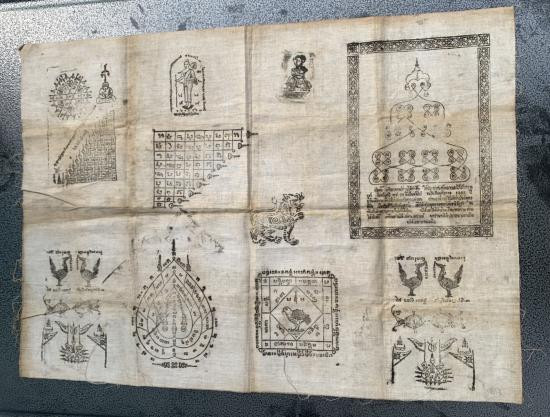 Q103. ผ้ายันต์เก่าบ้าน ๆ คราบเดิมครบยันต์เต็มผืน! (เคาะเดียวแดง) |