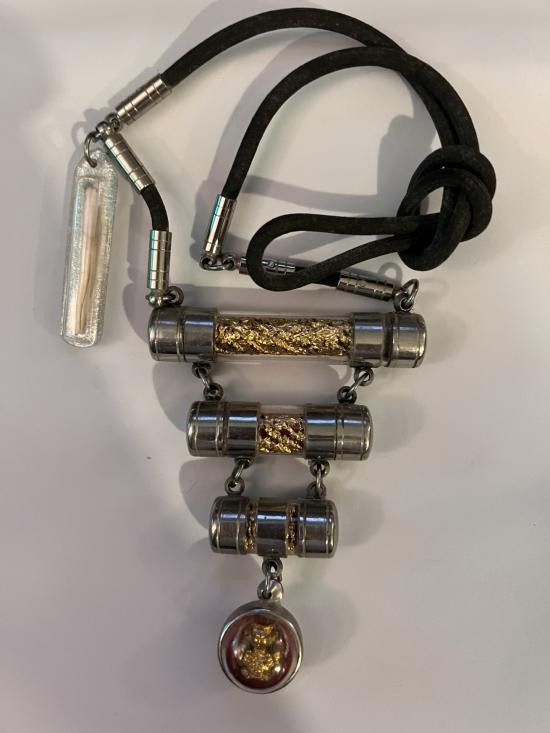 ล็อกเก็ตฉากทองหลวงปู่อุทัย วัดสระสองตอน หลังปลาตะเพียน+เส้นเกศา |