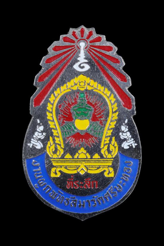 เข็มกลัดพระราหู หลวงพ่อปิ่น วัดศรีษะทอง รุ่นผูกพัทธสีมา จารเต็มสูบ เนื้อชุบนิกเกิลลงยาสี สร้างปี ๒๕๐๕ จ. นครปฐม |