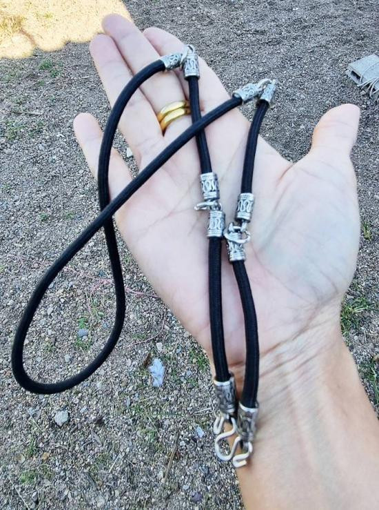 สร้อยคอคล้องพระเชือกร่ม (ไซส์ใหญ่ - 26 นิ้ว - 5 ห่วง ) ตอกหมุดแบบลายหนาแน่น คล้องพระได้ 5 องค์ ขนาดเชือกร่มอย่างหนา 4 มิล ตะขอแข็งแรงทนทาน ( ของใหม่ ) |