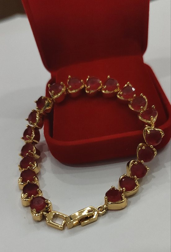 เทขาดทุน+ กำไลข้อมือทับทิมยาว 7.นิ้ว งานจิวเวลลี่ชุบทองแท้ |