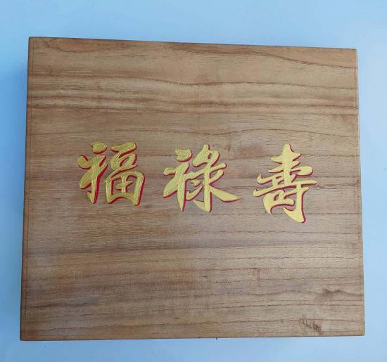 ***วัดใจ***กล่องไม้เก่า พร้อมตัวอักษรจีน ฮก ลก ซิ่ว ขนาด 12.5 x 14นิ้ว หนา 2.2 นิ้ว สวยๆ |