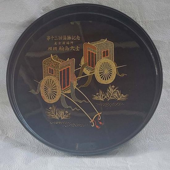 ***วัดใจ***ถาดไม้เคลือบเงาญี่ปุ่นที่ระลึก ลายรถม้าหลวงแบบย้อนยุค ลายเส้นทอง ขนาด 34 ซม. |