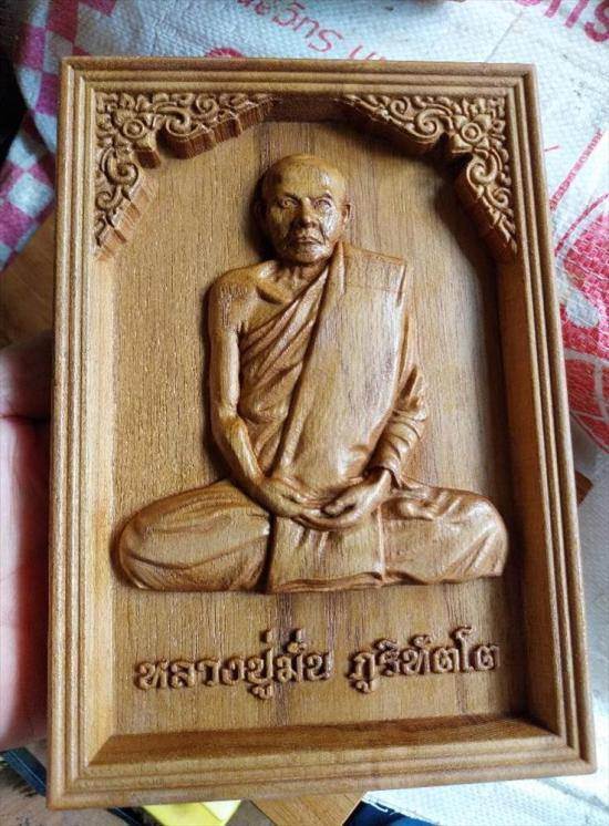 หลวงปู่มั่น ไม้สักแกะสลักมงคล ขนาด14 ซม.สูง20ซม.หนา2.5ซม +ขาตั้ง |
