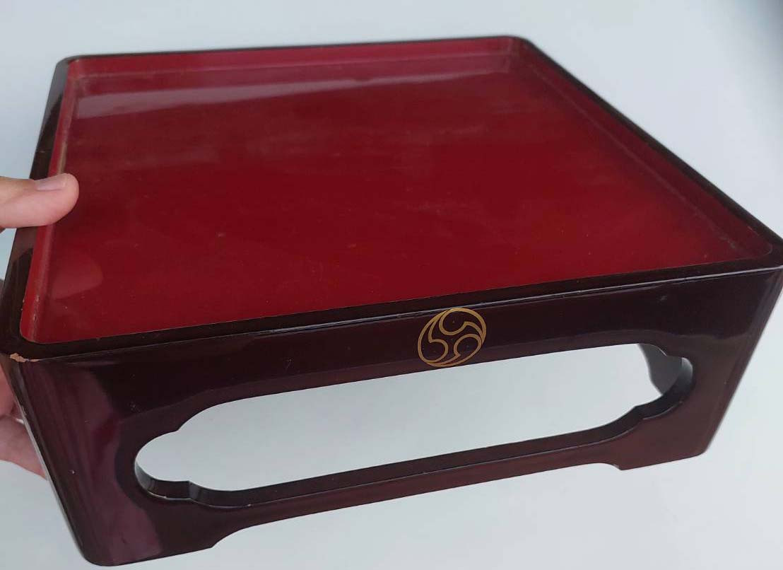 ***วัดใจ***ถาดไม้เคลือบเงาญี่ปุ่นที่ระลึก ลายรถม้าหลวงแบบย้อนยุค ลายเส้นทอง ขนาด 34 ซม.