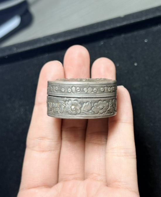 ตลับสีผึ้ง เนื้อเงินเก่า ตอก ภาษาจีน หนัก 17 กรัมกว่าๆๆๆ เงินเปอเซ็นต่ำหน่อย งานจีนเก่า |