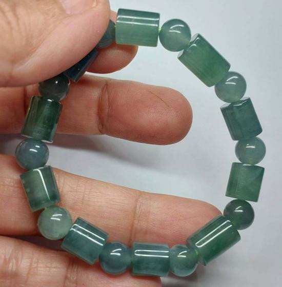 สร้อยข้อมือหยกพม่า สีโทนบลูสลับเขียว เม็ดกลมสลับทรงกระบอก ขนาด 7 มิล |