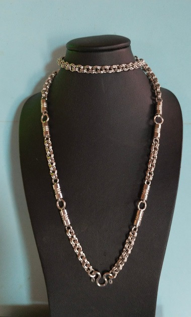 100 ++ สร้อยคอแสตนเลส ตราลูกศร งานเก่า ยาวตลอดเส้น 20นิ้ว ลายเม็ดไข่ปลาเล็ก ++ |