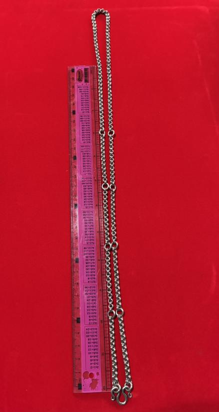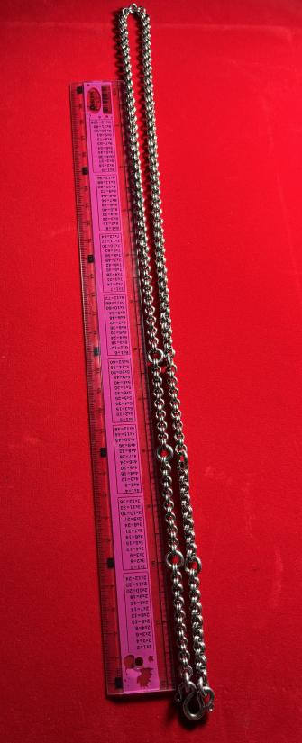 วัดใจ สร้อยคอแสตนเลสงานเก่า ลายวินเทจ ตราลูกศร ห้อยพระได้4องค์ ขนาดเทียบตามภาพครับ |