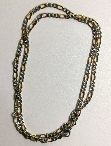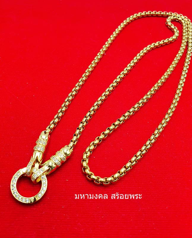 สร้อยสแตนเลสงานทองเลเซอร์ ยาว 26 นิ้ว แต่งด้วยหัวบัว ฝั่งพลอย หนา 3 มิล |