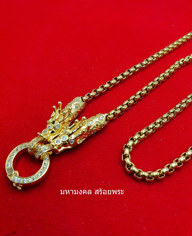 สร้อยสแตนเลส งานทองเลเซอร์แท้ แต่งด้วยหัวมังกร ยาว 26 นิ้วครับ |