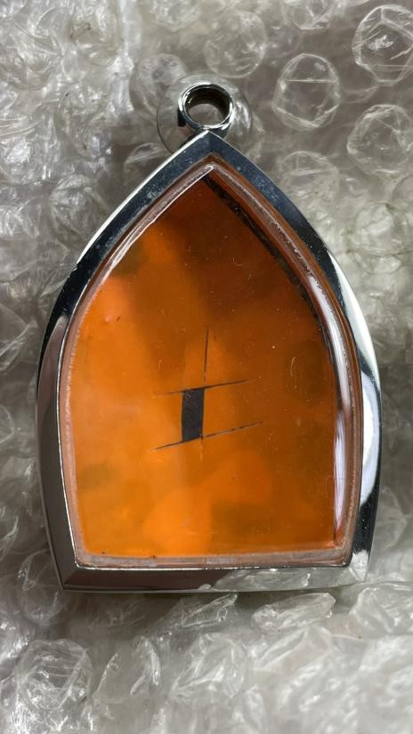 วัดใจ**เครื่องราง ผอบเนื้อกระไหล่เงินแกะลายใบใหญ่...ตามสภาพครับ |