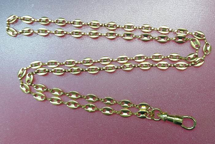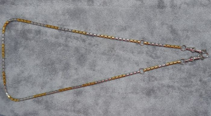 สร้อยสแตนเลสงานเลเซอร์ทอง ลายเมล็ดกาแฟ ยาว 26 นื้ว พร้อมสปริงก้ามปูสแตนเลสงานเลเซอร์ทองหมุนได้ |