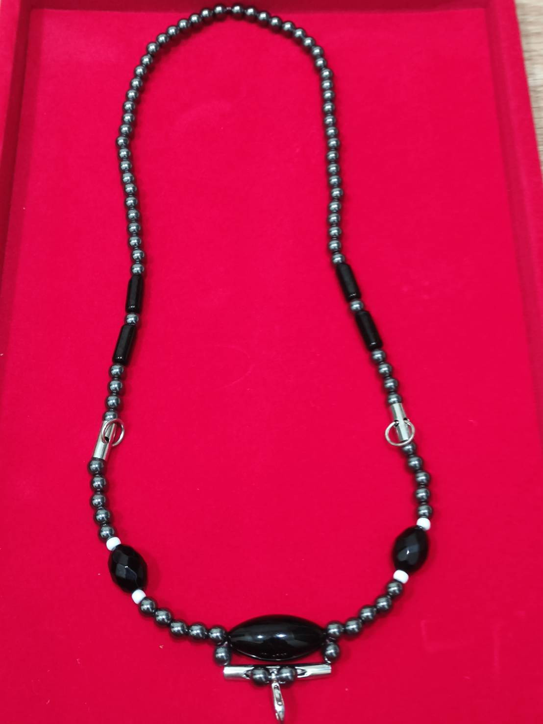 สร้อยลูกปัด ยาว12นิ้ว สวมหัวได้พอดี ใส่พระได้3องค์ สีดำนิล มือ1 เคาะเดียว |