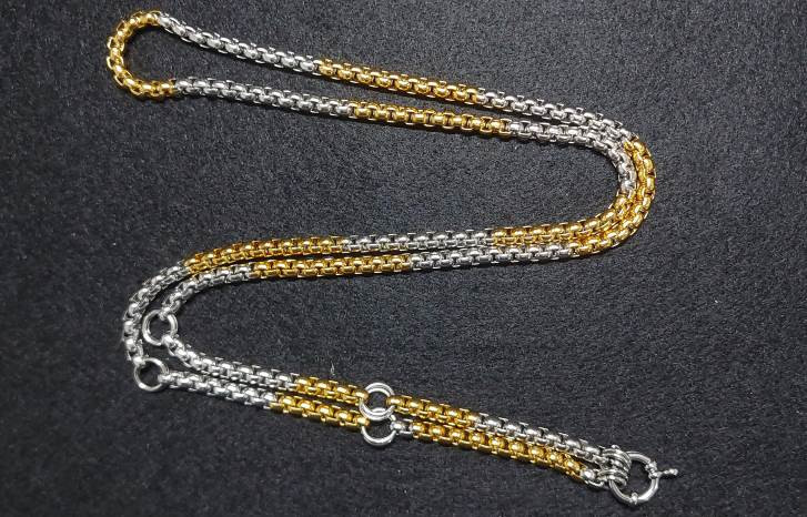 สร้อยสแตนเลสงานเลเซอร์ทอง ลายผ่าหวาย ยาว 26 นื้ว พร้อมสปริงก้ามปูสแตนเลสงานเลเซอร์ทอง |