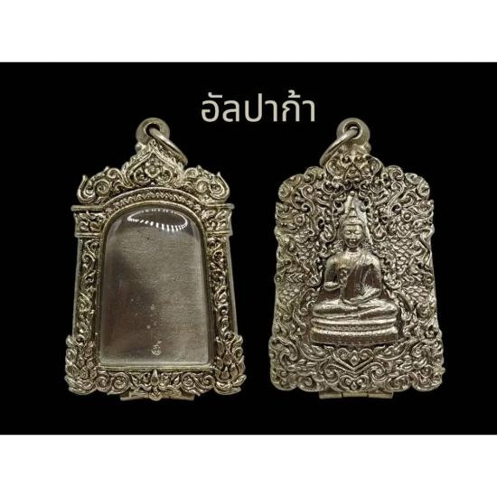 ตลับพระ สมเด็จเนื้ออัลปาก้า หลังปิดลายพระพุทธรูป นูนต่ำ งานดิบ ไม่ชุบ |