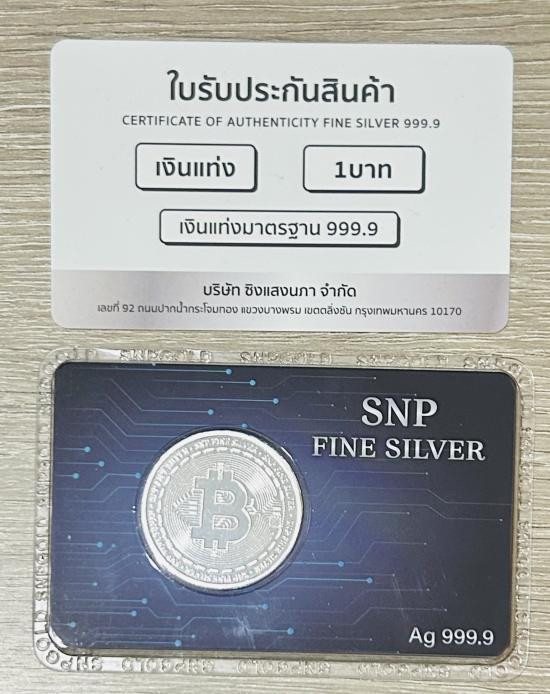 วัดใจ เงินแท่ง ในรูปทรงเหรียญบิทคอยท์ หนัก 1 บาท ในการ์ด ของแบรนด์ SNP พร้อมซองแดงของร้าน |
