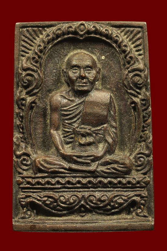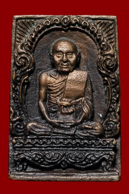 พระปิดตาหลวงปู่บัว วัดศรีบูรพาราม จ.ตราด พิมพ์หลังรูปเหมือน ปี 2553 เนื้อทองแดง ตอกโค๊ด นะ |