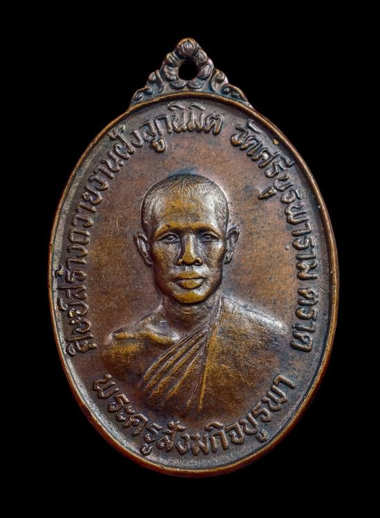 เหรียญหล่อ หลวงพ่อคง วัดวังสรรพรส ซุ้มกนก เนื้อนวะ ปี2528 |