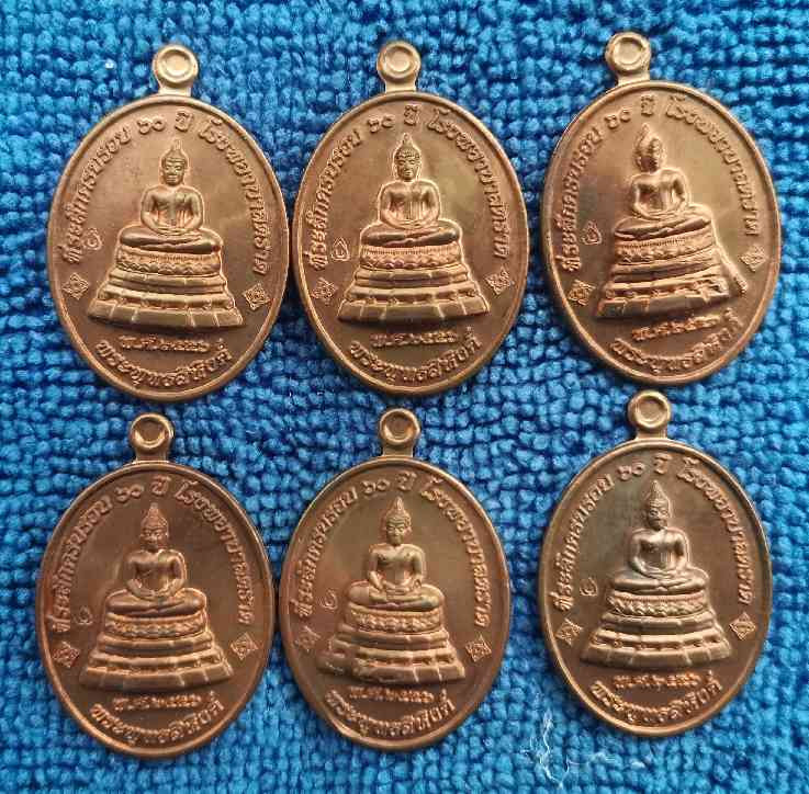 6 องค์ !! เหรียญพระพุทธสิหิงค์ เนื้อทองแดง ที่ระลึกครบรอบ 60 ปี รพ. ตราด |