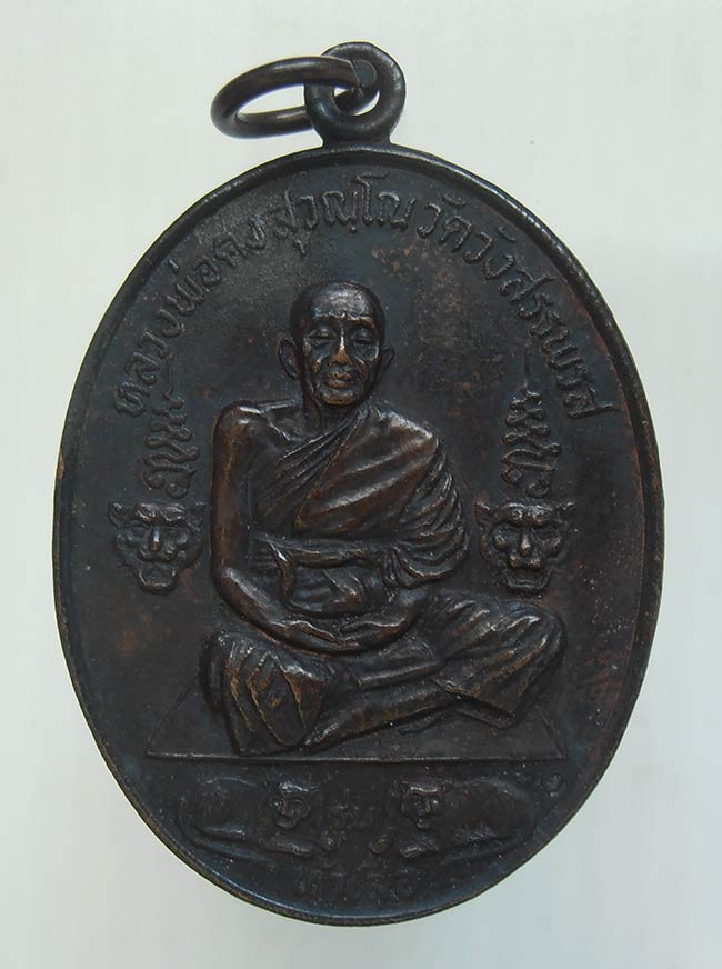 เหรียญหลวงพ่อคง วัดวังสรรพรส รุ่นห้าเสือ พิมพ์เต็มองค์ เนื้อทองแดง ปี 2521 สภาพสวยเดิม พร้อมบ้ตรรับรอง |