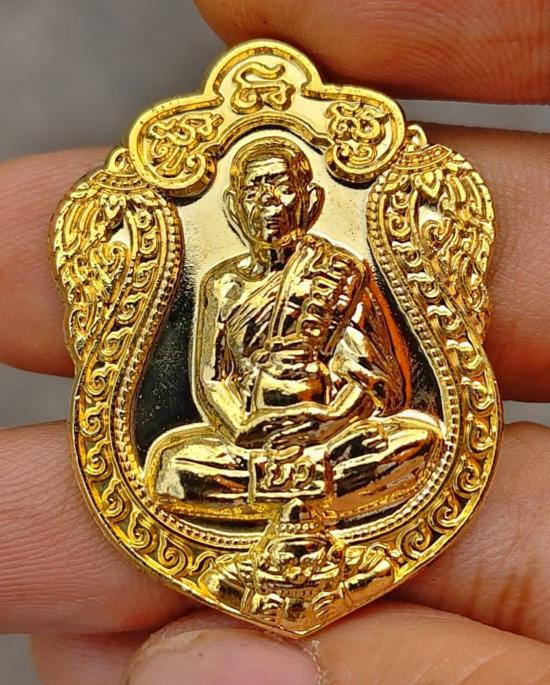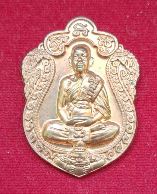 เคาะเดียวแดง.....เหรียญหลวงปู่บัว วัดศรีบูรพาราม ปี 2533 เนื้อกะไหล่ทองลงยา |