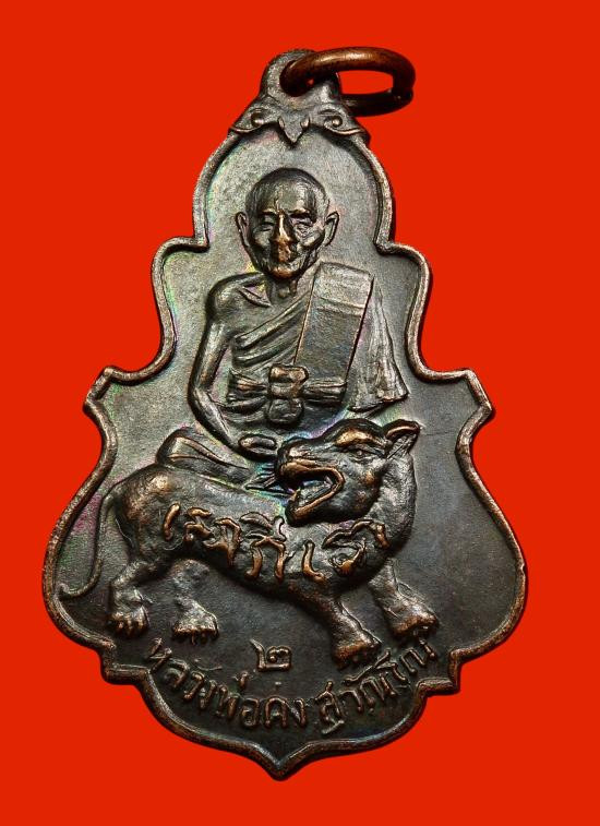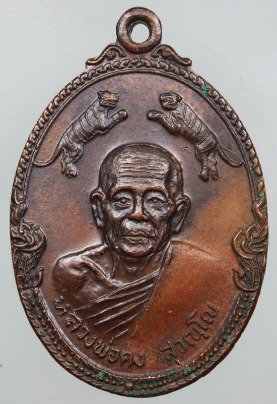 เหรียญห้าเสือ ครึ่งองค์ หลวงพ่อคง วัดวังสรรพรส ปี 2521 เนื้อทองแดง จังหวัดจันทบุรี (โค๊ตตอกเต็มใบ ครับ) |