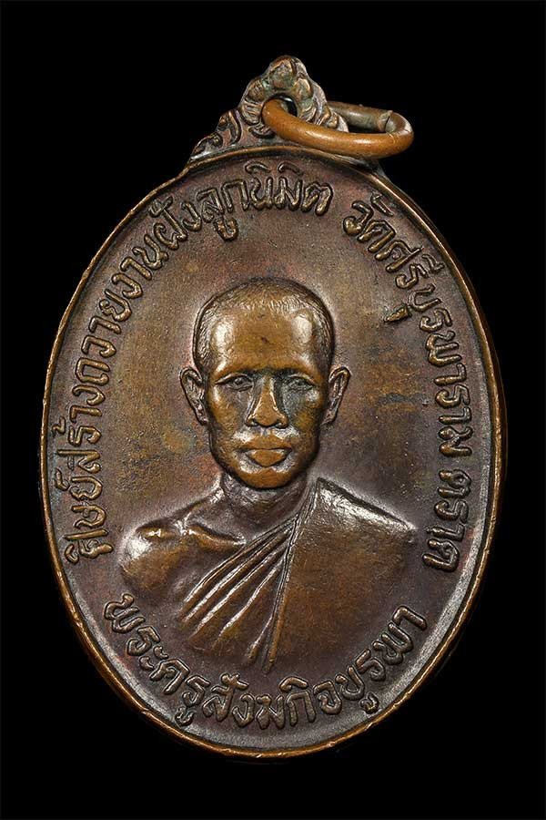 เหรียญไตรมาส หลวงพ่อคง วัดวังสรรพรส เนื้อทองแดงรมดำ ตอกโต้ด ค จ.จันทบุรี ปี 2518 |
