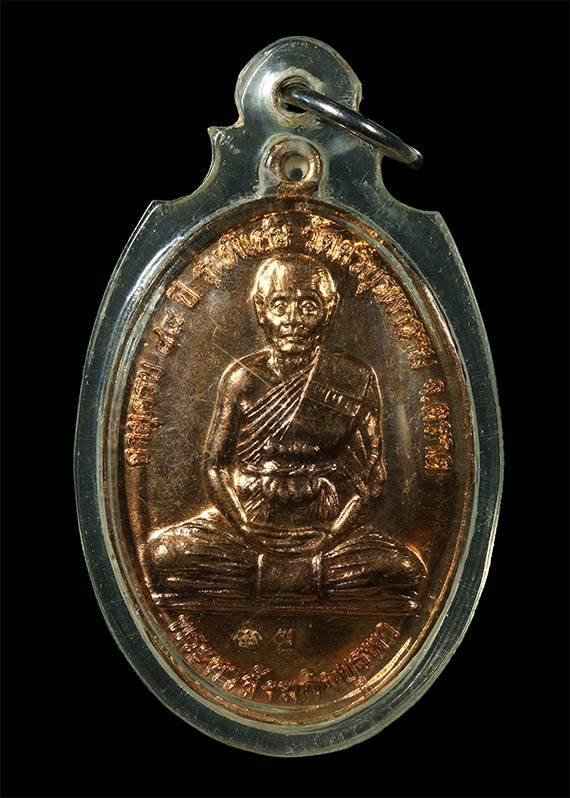 เหรียญนั่งพานเล็ก เนื้อทองแดง หลวงปู่บัว ถามโก ปี 2539 |