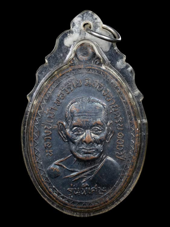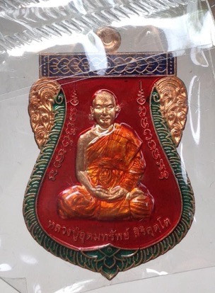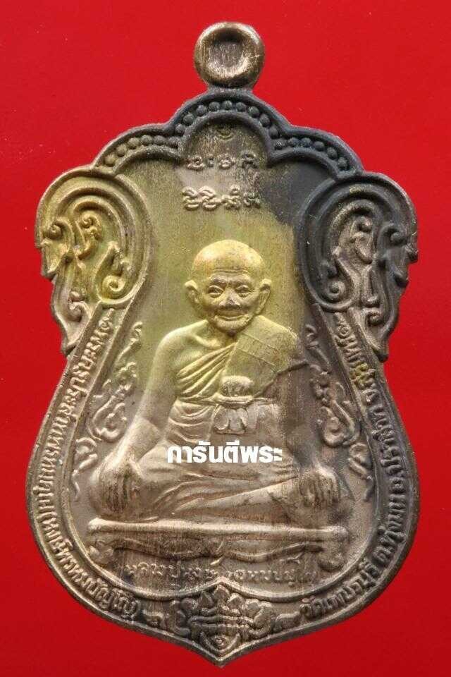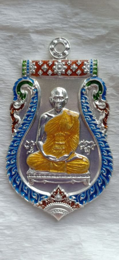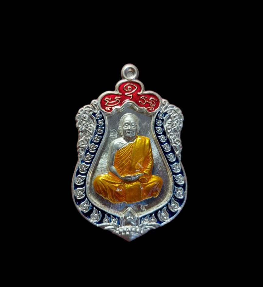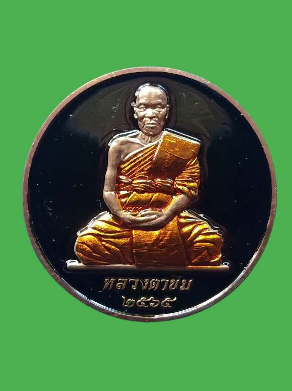 เหรียญนั่งพาน รุ่นเศรษฐีพันล้าน หลวงปู่แสง วัดโพธิ์ชัย จ.นครพนม ปี63 เนื้อทองเหลืองลงยา /โค๊ต/หมายเลข81