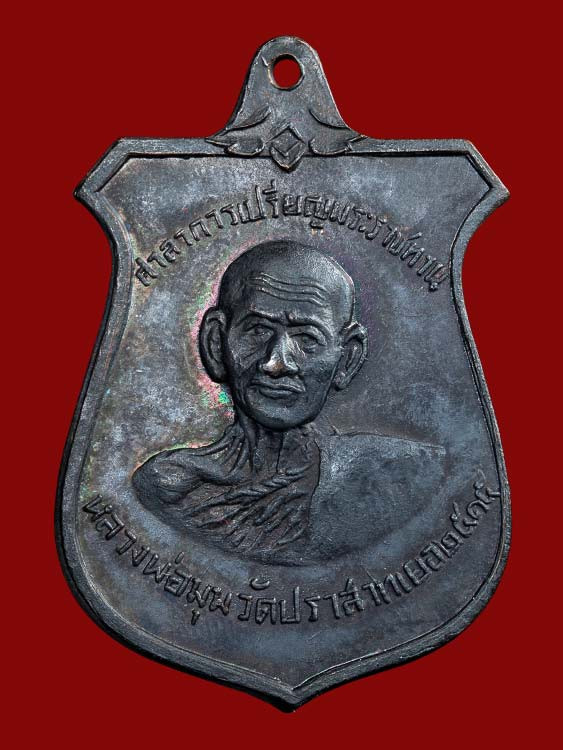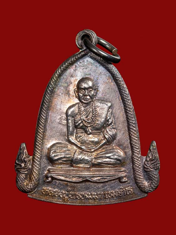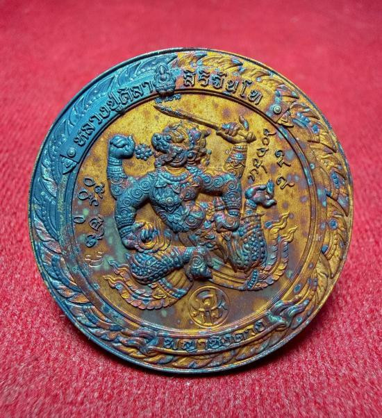 เหรีญพังพระกาฬ รุ่น ยอดรวยรวย เนื้อทองแดงผิวรุ้ง หมายเลข 256 หลวงปู่ศิลา