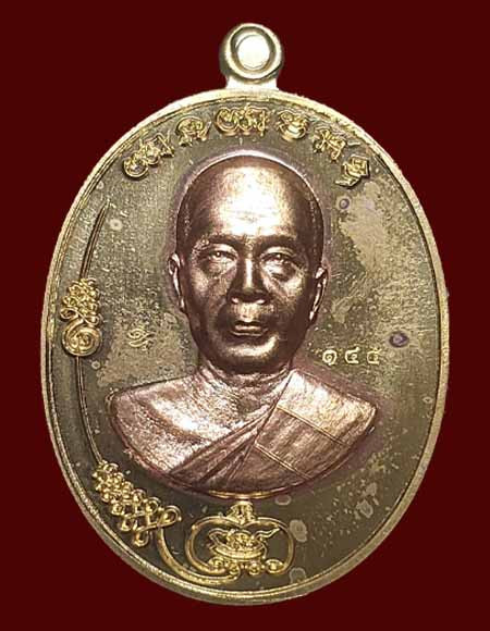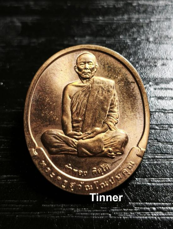 เหรียญหลวงพ่อทอง รุ่นประวัติศาสตร์ไตรภาคี ปี 2558 เนื้อทองฝาบาตร มีจารหมายเลข 1562
