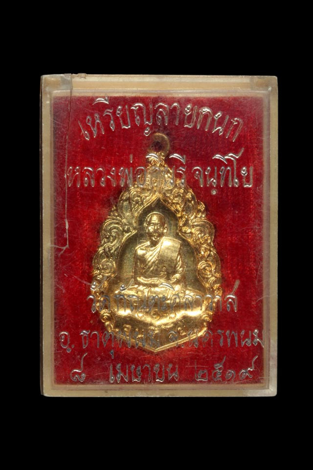 วัดใจ!!! เหรียญพญาชิงดวง หลวงปู่มหาศิลา รายการที่3 เนื้อผงขาวปิดทอง No.331 สภาพสวยสมบูรณ์ พร้อมกล่อง
