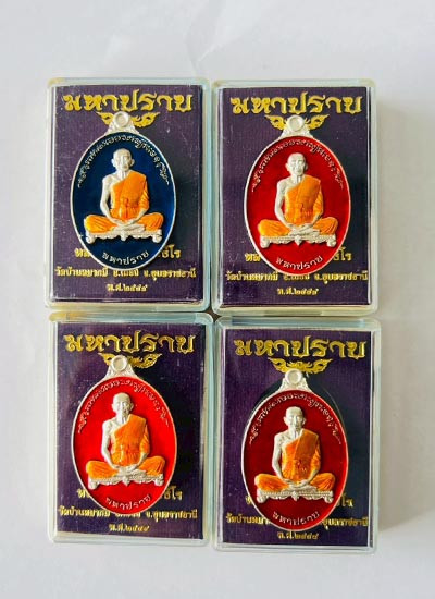 พระอาจารย์ต้อม วัดท่าสะแบง จ.ร้อยเอ็ด รุ่นอุดมทรัพย์ พิมพ์เสมา ( รายการ 4.1 เนื้อเงินหน้ากากมหาชนวน ขอบมหาชนวน ลงยาจีวร ) No.205 พร้อมกล่องเดิม |