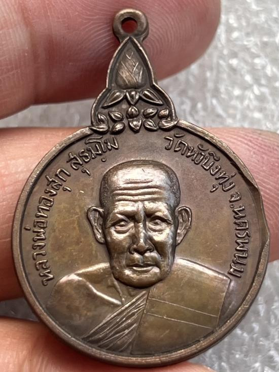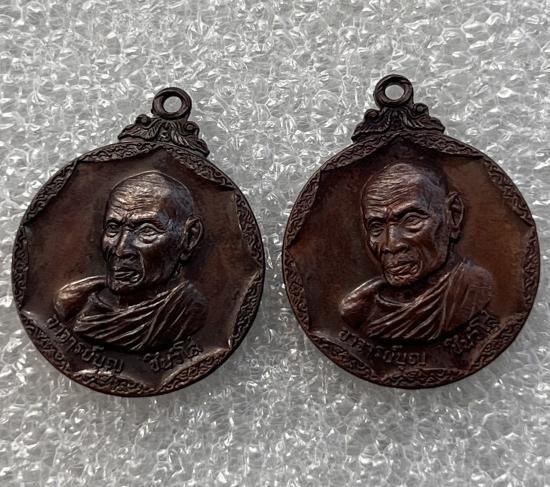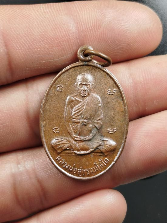 เหรียญเหนือดวง เนื้อทองแดง (รุ่นแรก มีวงเดือน ขอบตัดชัดเจน) หลวงปู่มหาศิลา สิริจันโท พร้อมบัตรรับรองการันตี สวยเดิมๆ |