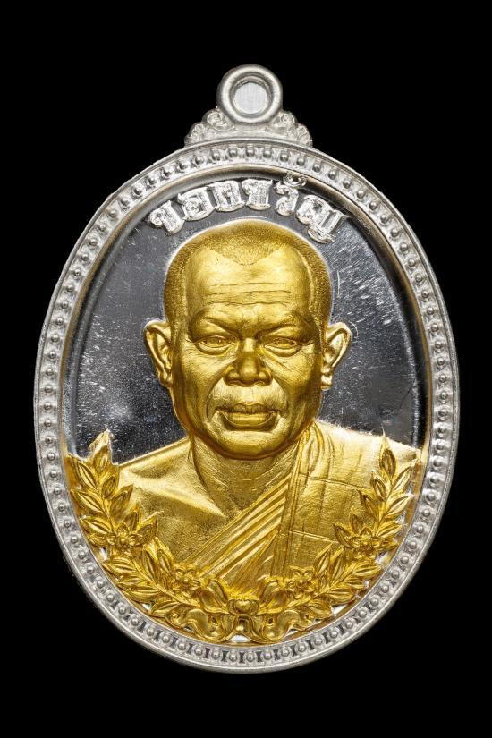 (เคาะแดง9500) +บัตรสมาคม เหรียญรูปไข่หลวงพ่อสุริยันต์ รุ่นของขวัญ เงินหน้ากากทองคำ |