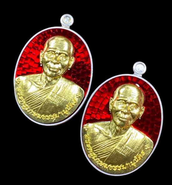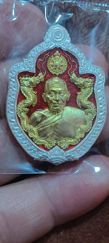 (( วัดใจ )) อายุวัฒนมงคล หลวงปู่ศิลา สิริจันโท + มังกรคู่ ฝาบาตรลงยาแดงขอบนวะโลหะ เลข.๑๔๒๕ กล่องเดิม สู้ สู้ |