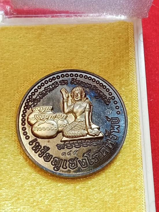 เหรียญนางกวัก เฮงหนุนดวง หลวงปู่เฮง ปภาโส เนื้อทองแดงรมดำหน้ากากอัลปาก้า |