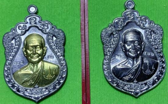 ขุนแผนพิมพ์ใหญ่หลังติดแผ่นปั๊มรูปเหมือน เนื้อเงิน +พิมพ์เล็ก หลวงปู่คำสิงห์ วัดปลาซิว ศรีสะเกษ |