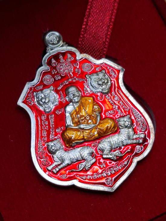 เหรียญ ปาดตาล เศรษฐีแสนล้าน หลวงปู่แสน วัดบ้านหนองจิก จ.ศรีสะเกษ ปี 2560 เนื้อเงินลงยาแดง หมายเลข 7 |