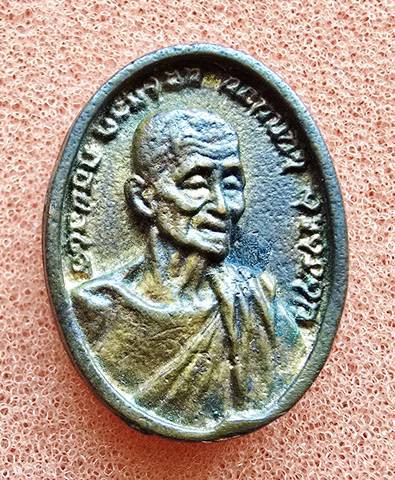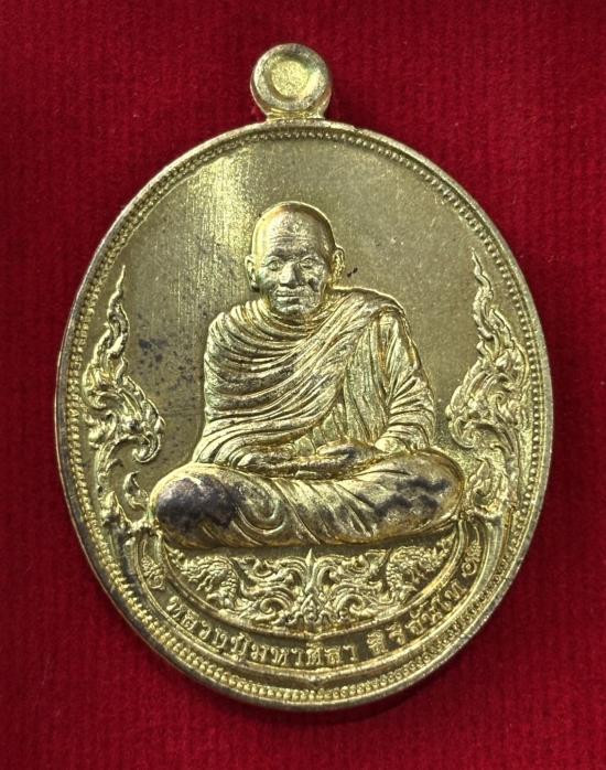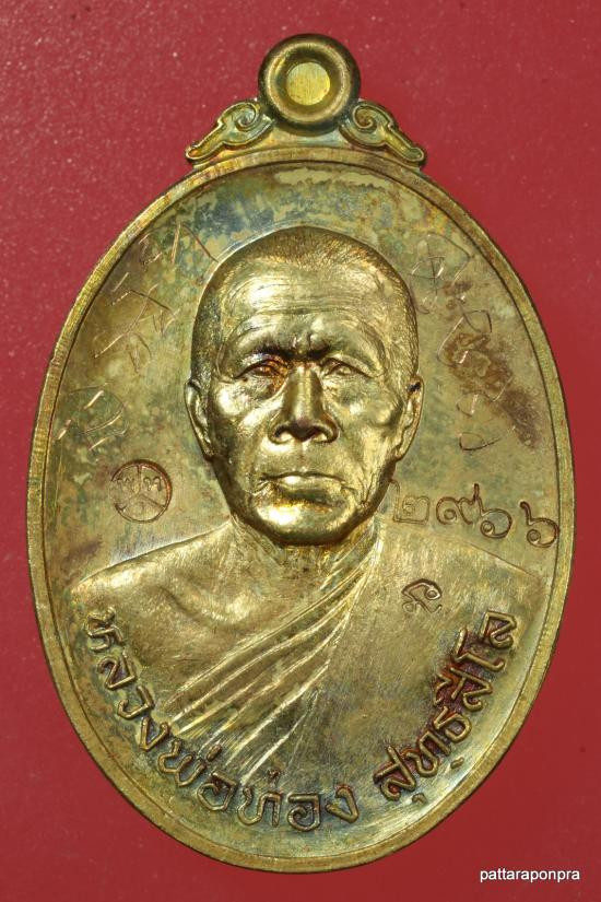 เหรียญหลวงพ่อทอง รุ่นลาภยศ ปี 2557 เนื้อกะไหล่ มีจารหลวงพ่อ หมายเลข 2966 |