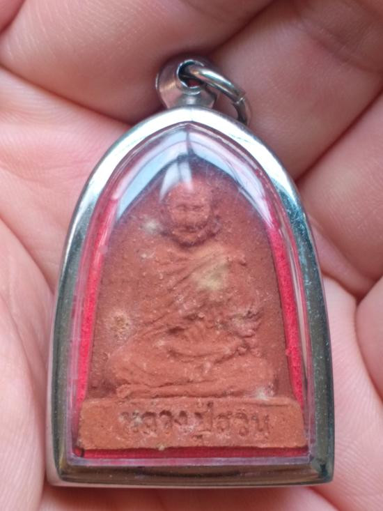 **พระผงรูปเหมือนพิมพ์เตารีด หลวงปู่ญาท่านสวน วัดนาอุดม จ. อุบลราชธานีปี38 พร้อมตลับสเตนเลส