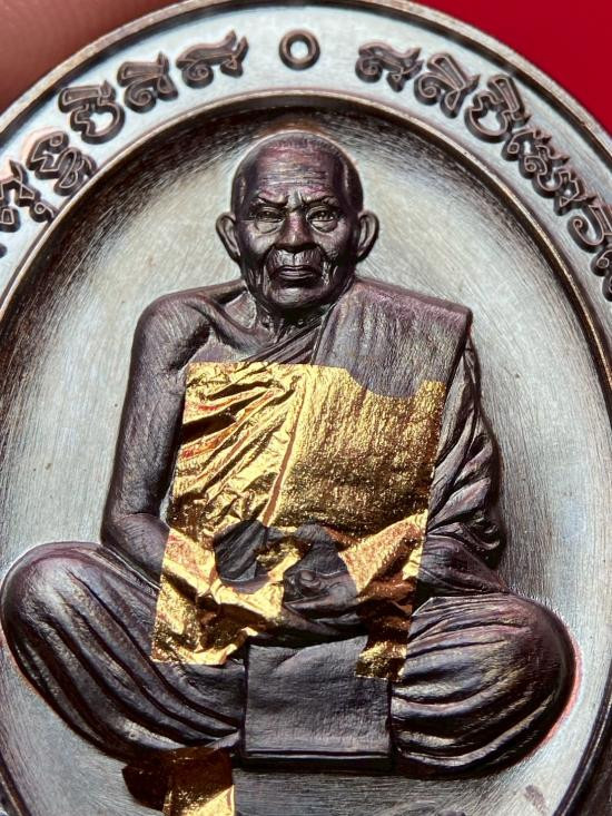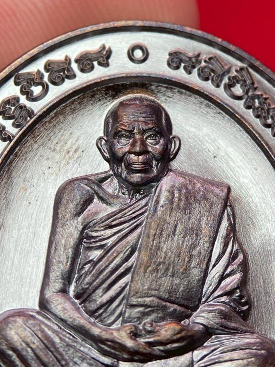 เหรียญนั่งพานหลวงพ่อทอง รุ่นชนะมาร ปี 2565 เนื้อนวะหน้ากากเงิน หมายเลข 383