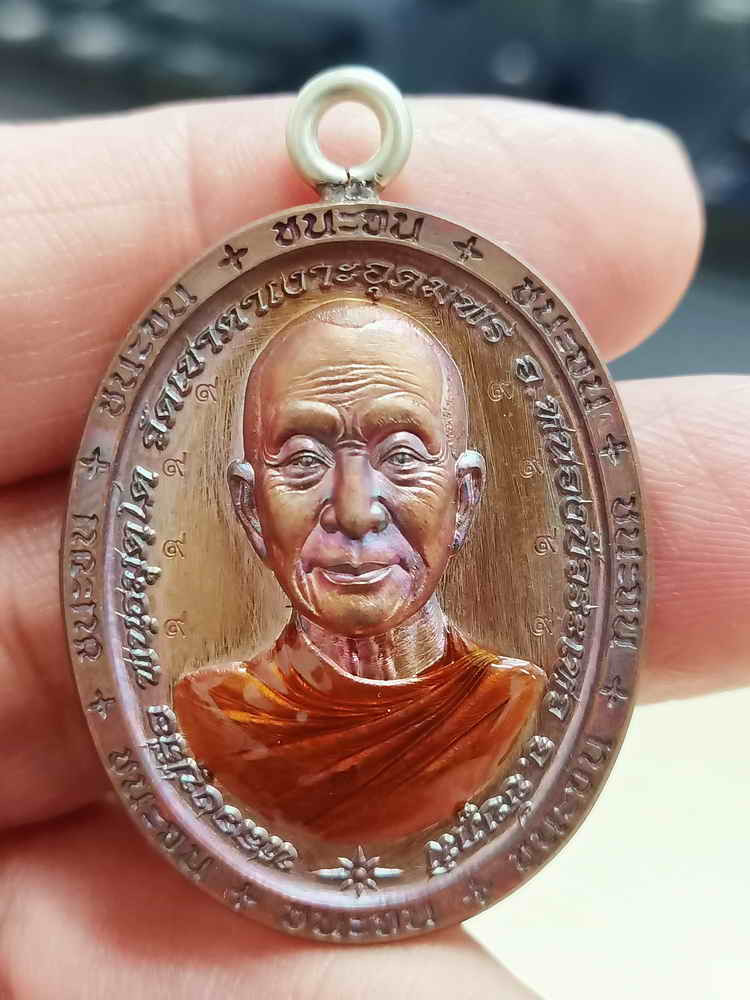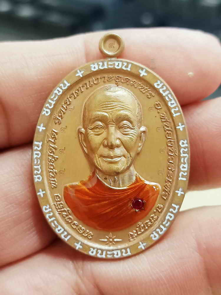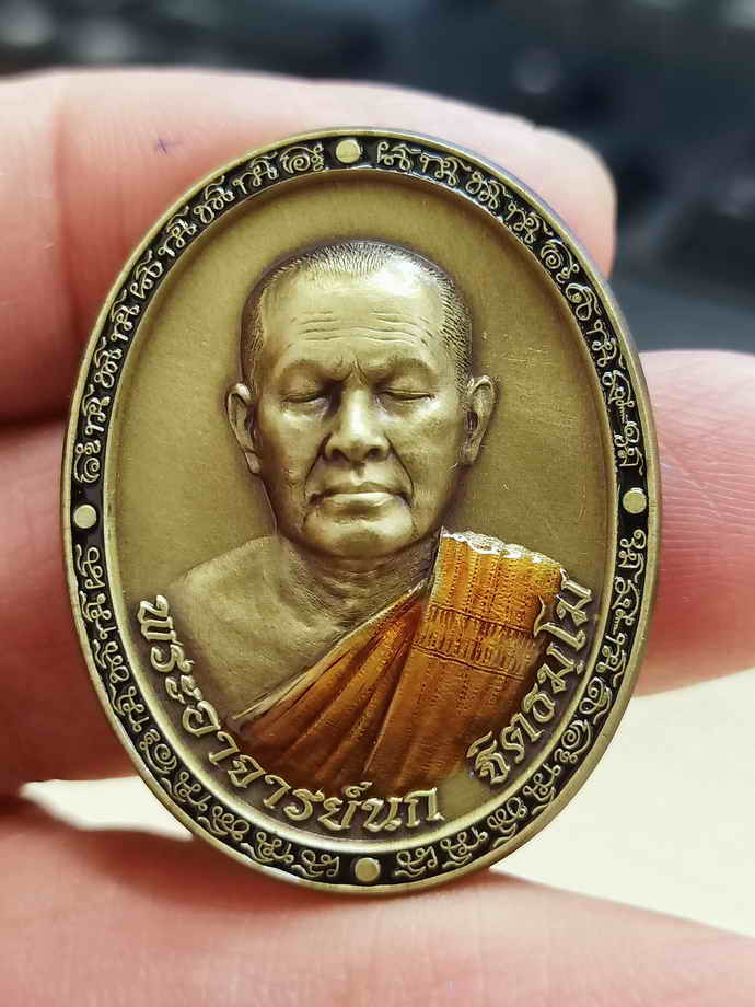 เหรียญหลวงพ่อทอง รุ่นรวยหมื่นล้าน เนื้อทองฝาบาตรลงยา หมายเลข 51