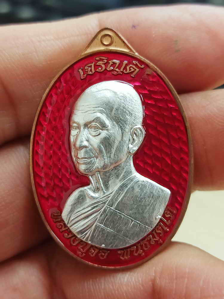 แบ่งปัน..เหรียญ ๙ นะเทพยินดี (เนื้อเงินลงยาแดง) หลวงปู่คำบุ วัดกุดชมภู จ.อุบล หมายเลข ๙๘ สร้าง ๒๙๙ เหรียญ