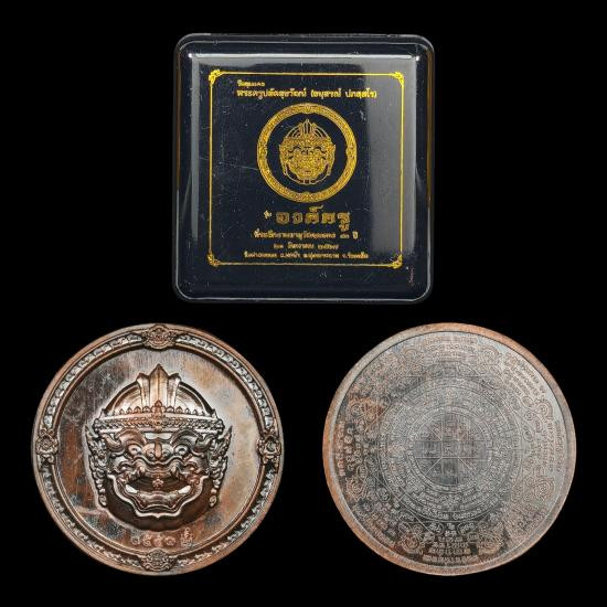 *** เคาะเดียวแดง 599 ฿ *** เหรียญกลมหน้าหนุมาน รุ่น องค์ครู ด้านหลังยันต์ดวง (ยันต์พระอาจารย์ต้อม) พระครูปลัดสุขวัฒน์ วัดท่าสะแบง ร้อยเอ็ด เนื้อสัตตะโลหะ หมายเลข ๓๕๕๑ พร้อมกล่องเดิม |